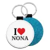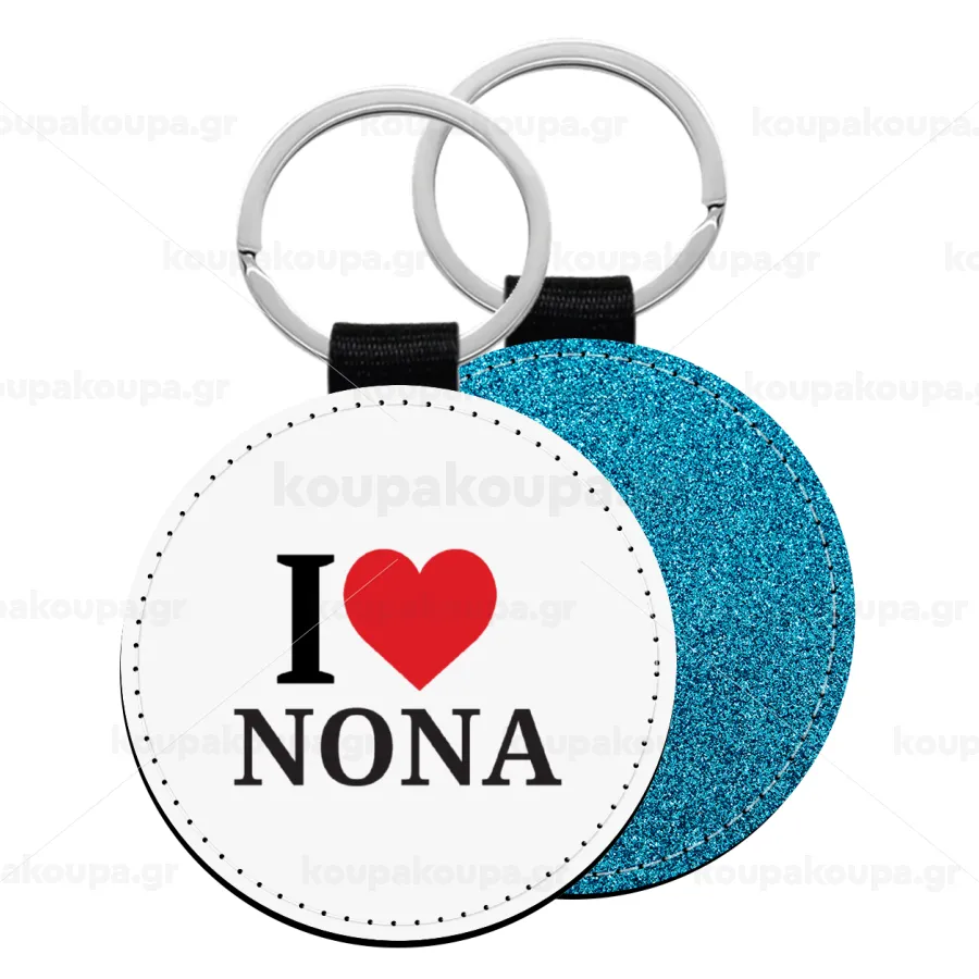 I Love ΝΟΝΑ, Μπρελόκ Δερματίνη, στρογγυλό ΜΠΛΕ (5cm)