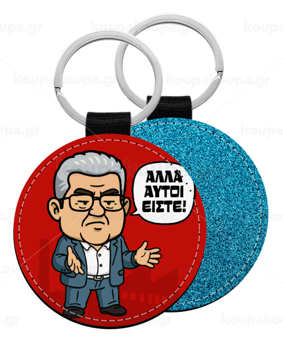 Κουτσούμπας, "Αλλά αυτοί είστε!", Μπρελόκ Δερματίνη, στρογγυλό ΜΠΛΕ (5cm)