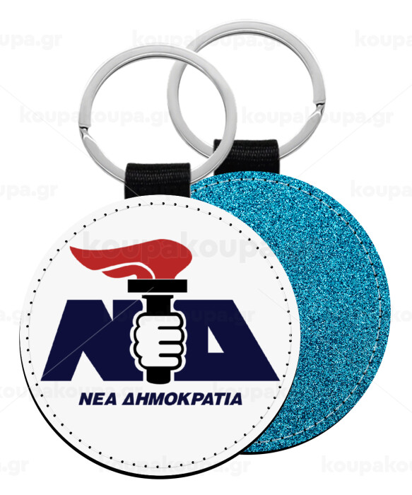 Νέα δημοκρατία κλασική, Μπρελόκ Δερματίνη, στρογγυλό ΜΠΛΕ (5cm)