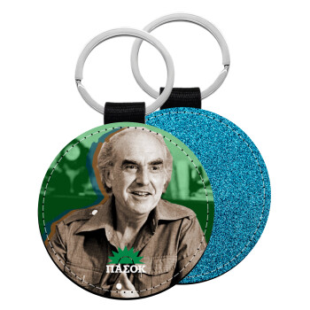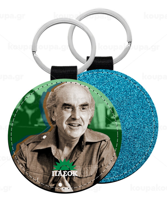 ΠΑΣΟΚ Ανδρέας Παπανδρέου, Μπρελόκ Δερματίνη, στρογγυλό ΜΠΛΕ (5cm)