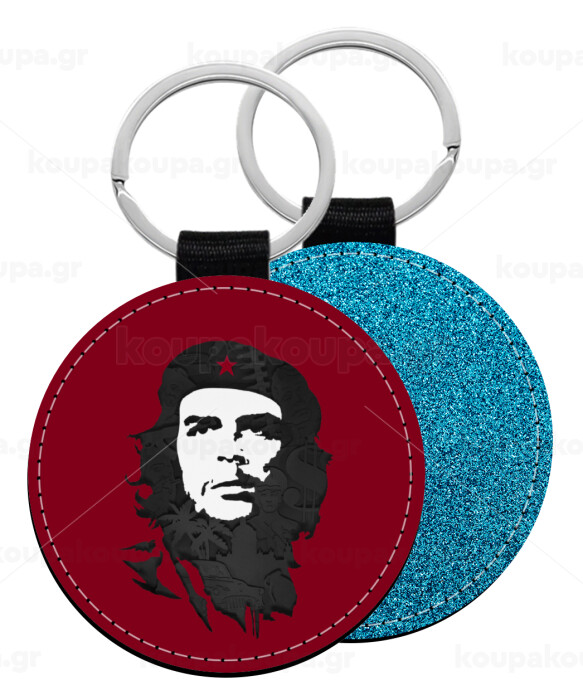 Che Guevara, Μπρελόκ Δερματίνη, στρογγυλό ΜΠΛΕ (5cm)