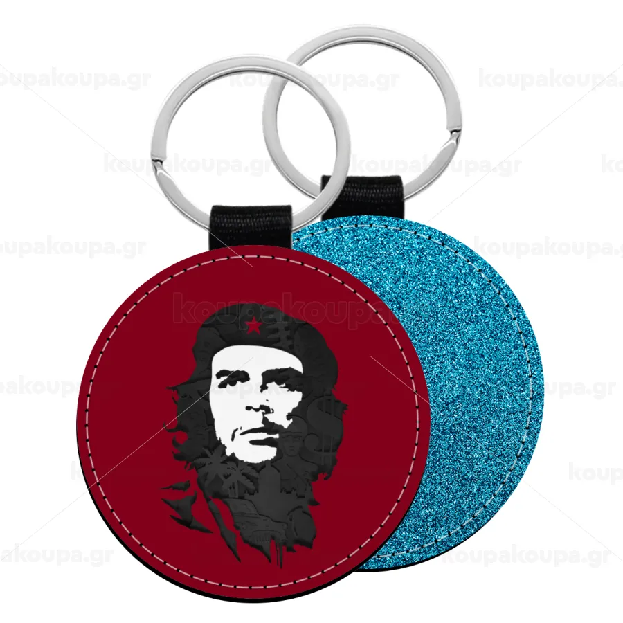 Che Guevara, Μπρελόκ Δερματίνη, στρογγυλό ΜΠΛΕ (5cm)