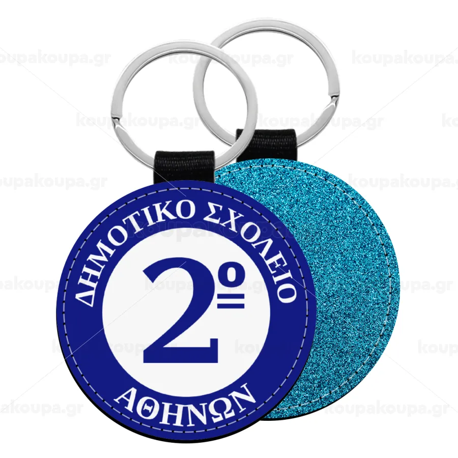 Έμβλημα Σχολικό μπλε, Μπρελόκ Δερματίνη, στρογγυλό ΜΠΛΕ (5cm)