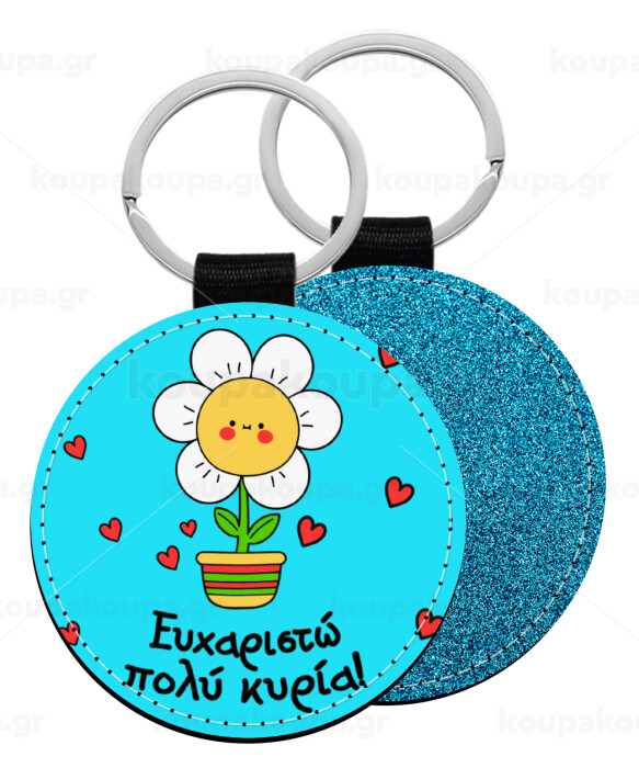 Ευχαριστώ πολύ κυρία!!!, Μπρελόκ Δερματίνη, στρογγυλό ΜΠΛΕ (5cm)