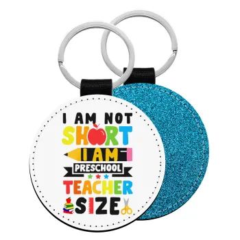 I Am Not Short I Am Preschool Teacher Size, Μπρελόκ Δερματίνη, στρογγυλό ΜΠΛΕ (5cm)