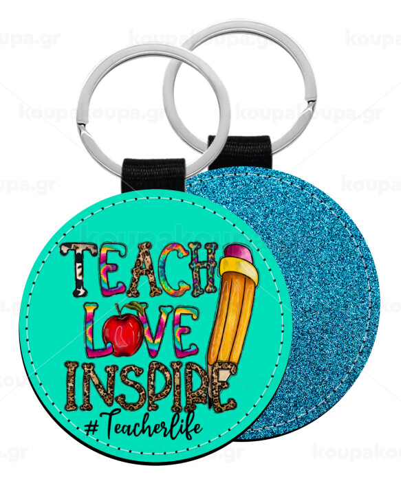 Teach, Love, Inspire, Μπρελόκ Δερματίνη, στρογγυλό ΜΠΛΕ (5cm)