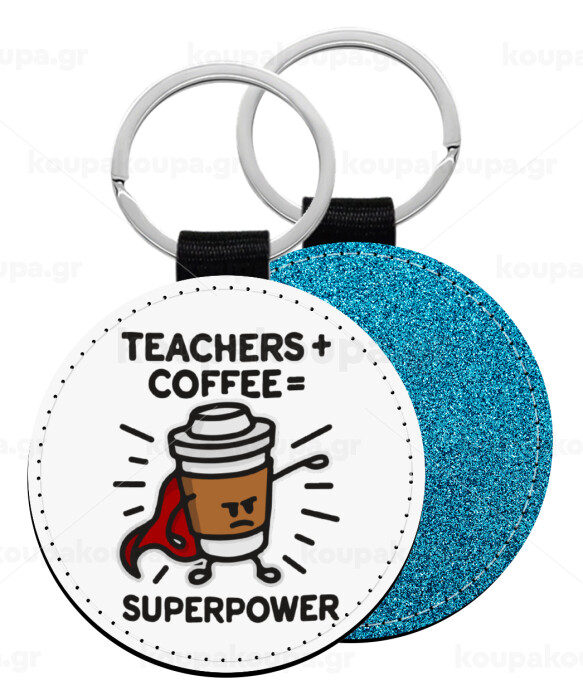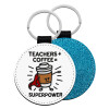 Teacher Coffee Super Power, Μπρελόκ Δερματίνη, στρογγυλό ΜΠΛΕ (5cm)
