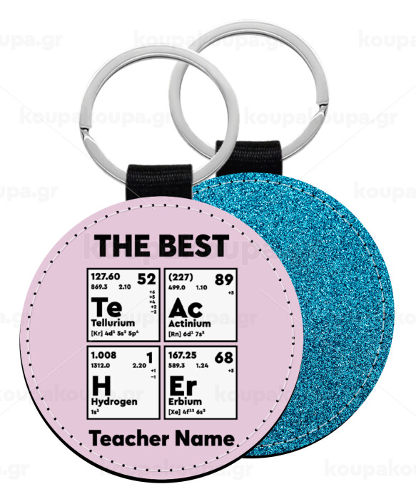 THE BEST Teacher chemical symbols, Μπρελόκ Δερματίνη, στρογγυλό ΜΠΛΕ (5cm)