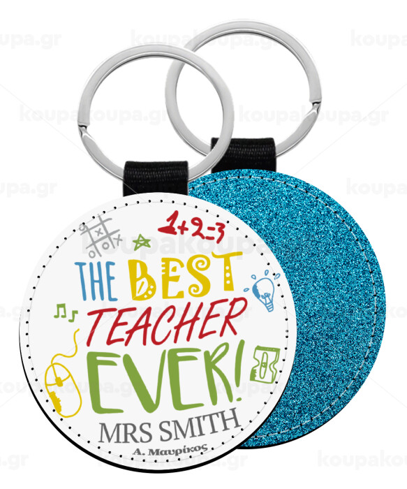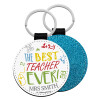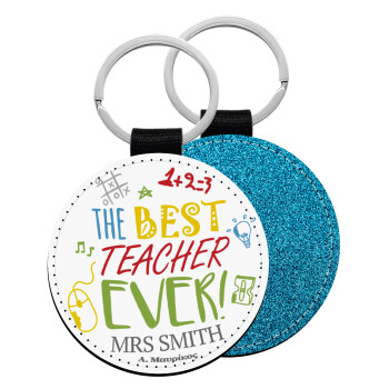 The best teacher ever!, Μπρελόκ Δερματίνη, στρογγυλό ΜΠΛΕ (5cm)
