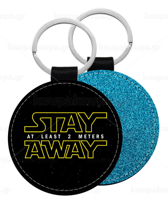 Stay Away, Μπρελόκ Δερματίνη, στρογγυλό ΜΠΛΕ (5cm)