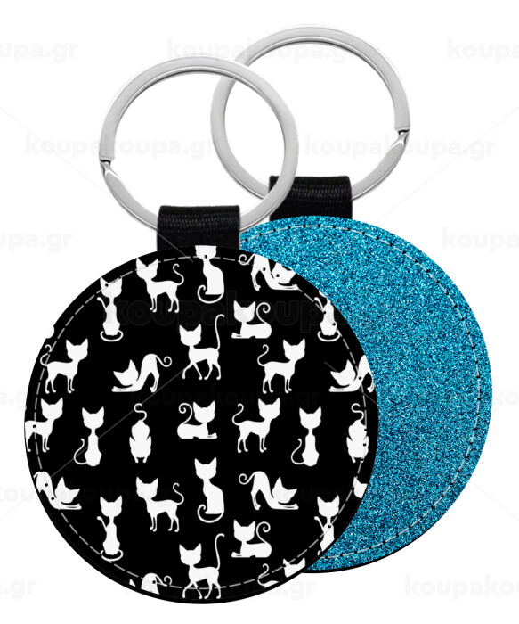 Γατούλες κυρίες, Μπρελόκ Δερματίνη, στρογγυλό ΜΠΛΕ (5cm)
