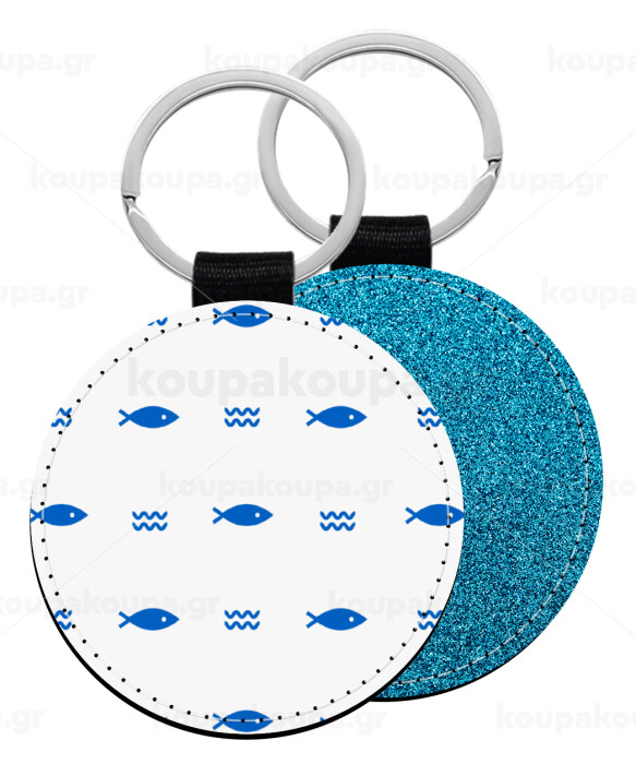Fishing, Μπρελόκ Δερματίνη, στρογγυλό ΜΠΛΕ (5cm)