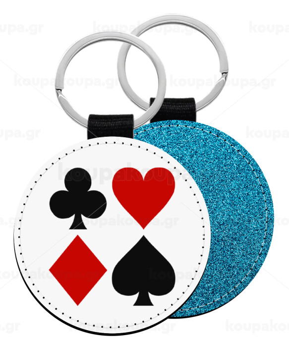 Τραπουλόχαρτα, Μπρελόκ Δερματίνη, στρογγυλό ΜΠΛΕ (5cm)