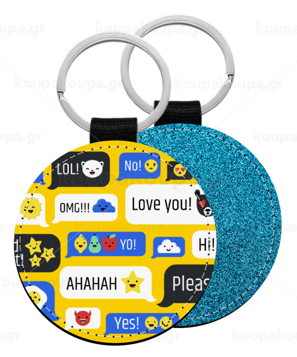 Emoji's text messages, Μπρελόκ Δερματίνη, στρογγυλό ΜΠΛΕ (5cm)