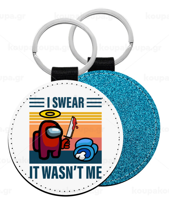 Among us, I swear it wasn't me, Μπρελόκ Δερματίνη, στρογγυλό ΜΠΛΕ (5cm)