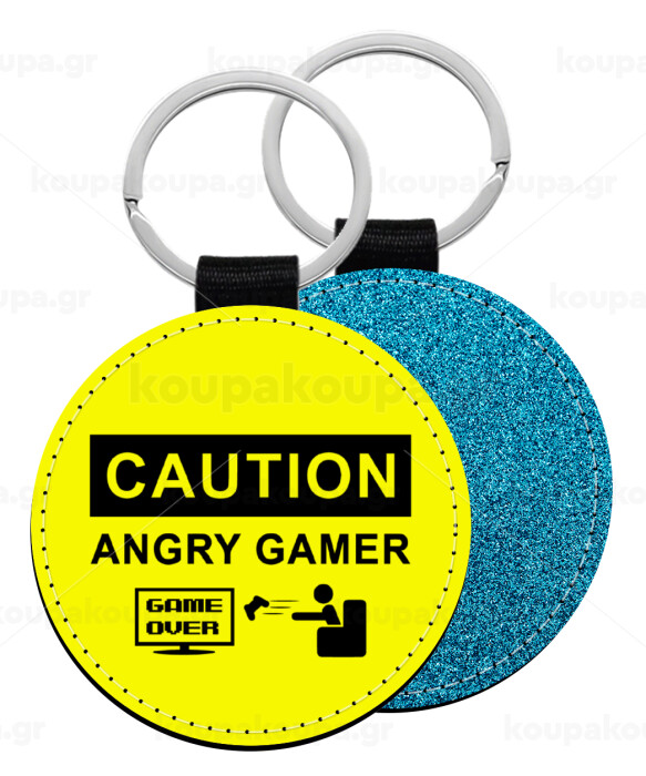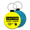 Caution, angry gamer!, Μπρελόκ Δερματίνη, στρογγυλό ΜΠΛΕ (5cm)