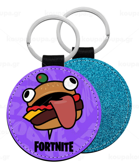 Fortnite Durr Burger, Μπρελόκ Δερματίνη, στρογγυλό ΜΠΛΕ (5cm)