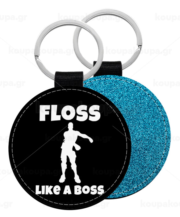 Fortnite Floss Like a Boss, Μπρελόκ Δερματίνη, στρογγυλό ΜΠΛΕ (5cm)