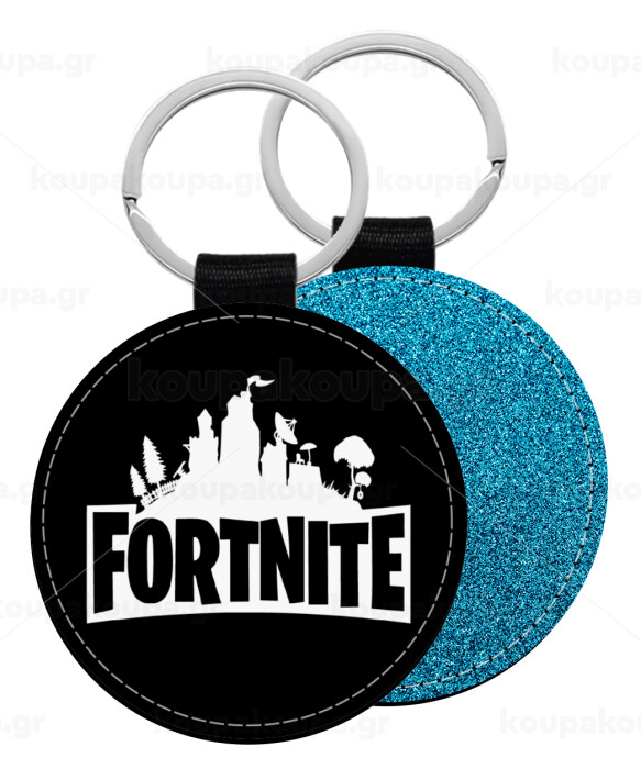 Fortnite, Μπρελόκ Δερματίνη, στρογγυλό ΜΠΛΕ (5cm)