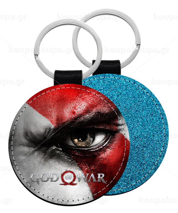 God of war Stratos, Μπρελόκ Δερματίνη, στρογγυλό ΜΠΛΕ (5cm)
