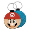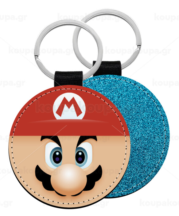 Super mario flat, Μπρελόκ Δερματίνη, στρογγυλό ΜΠΛΕ (5cm)