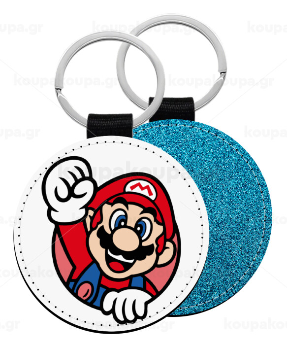 Super mario win, Μπρελόκ Δερματίνη, στρογγυλό ΜΠΛΕ (5cm)