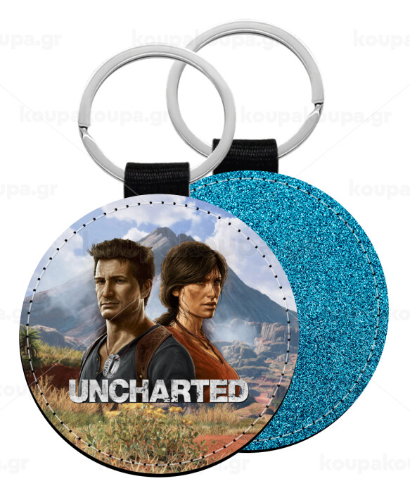 Uncharted, Μπρελόκ Δερματίνη, στρογγυλό ΜΠΛΕ (5cm)