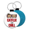 Catflix and Chill, Μπρελόκ Δερματίνη, στρογγυλό ΜΠΛΕ (5cm)