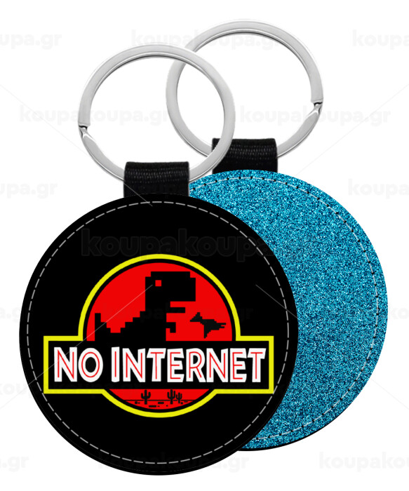 No internet, Μπρελόκ Δερματίνη, στρογγυλό ΜΠΛΕ (5cm)