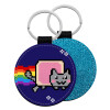 Nyan Pop-Tart Cat, Μπρελόκ Δερματίνη, στρογγυλό ΜΠΛΕ (5cm)