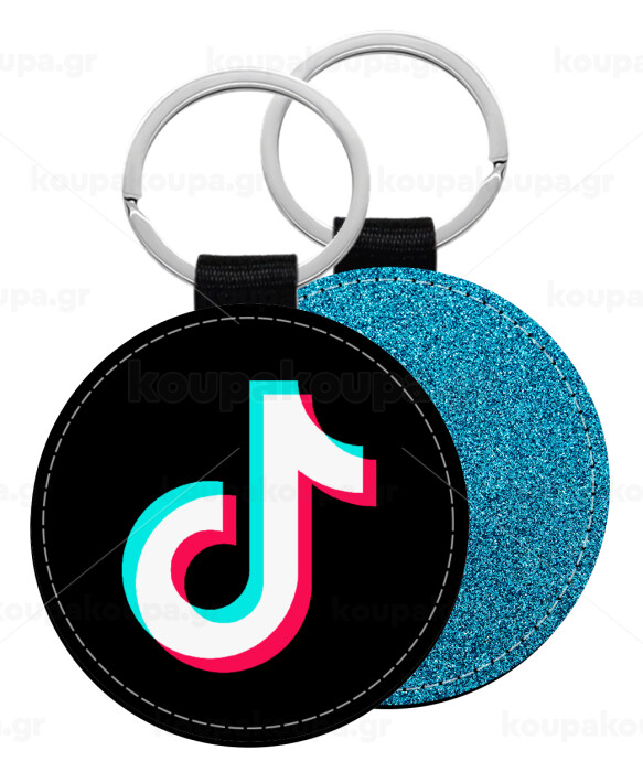 TikTok, Μπρελόκ Δερματίνη, στρογγυλό ΜΠΛΕ (5cm)