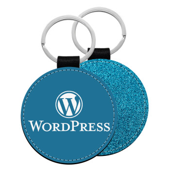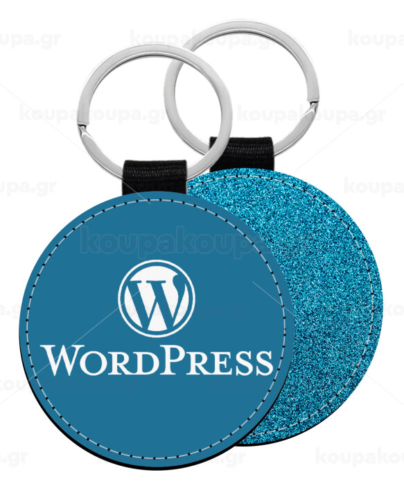 Wordpress, Μπρελόκ Δερματίνη, στρογγυλό ΜΠΛΕ (5cm)