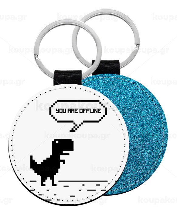 You are offline dinosaur, Μπρελόκ Δερματίνη, στρογγυλό ΜΠΛΕ (5cm)