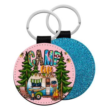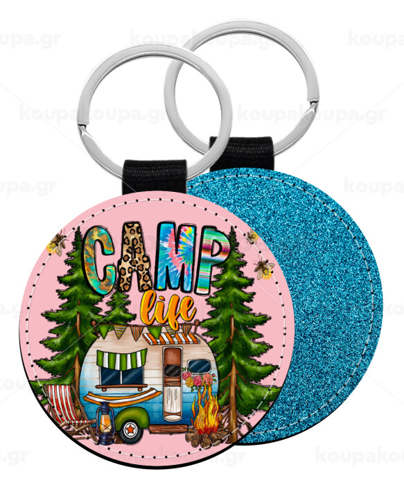 Camp Life, Μπρελόκ Δερματίνη, στρογγυλό ΜΠΛΕ (5cm)