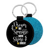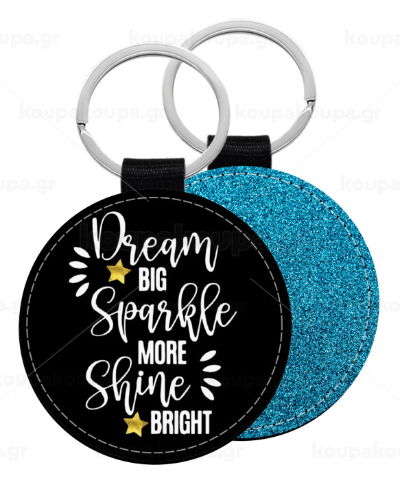 Dream big, Sparkle more, Shine bright, Μπρελόκ Δερματίνη, στρογγυλό ΜΠΛΕ (5cm)