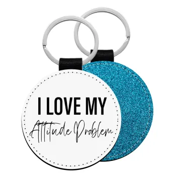 I love my attitude problem, Μπρελόκ Δερματίνη, στρογγυλό ΜΠΛΕ (5cm)