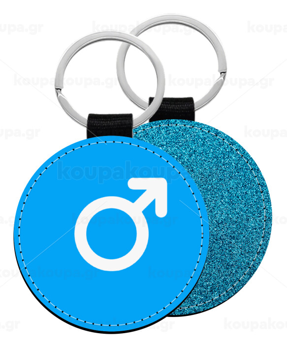 MALE, Μπρελόκ Δερματίνη, στρογγυλό ΜΠΛΕ (5cm)