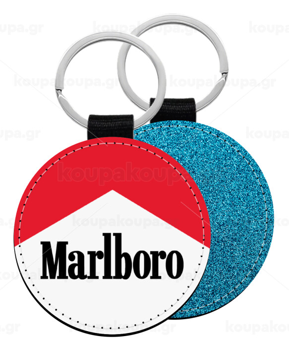 Marlboro, Μπρελόκ Δερματίνη, στρογγυλό ΜΠΛΕ (5cm)