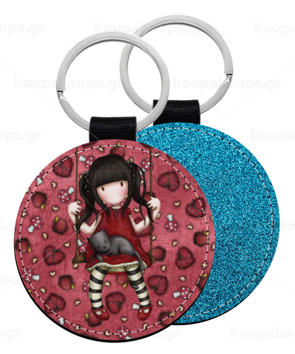 Leatherette keychain with glitter on one side and high resistance leatherette on the other. Safety ring for the keys.