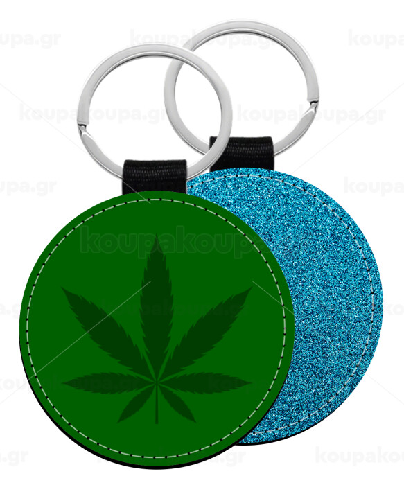 Weed, Μπρελόκ Δερματίνη, στρογγυλό ΜΠΛΕ (5cm)