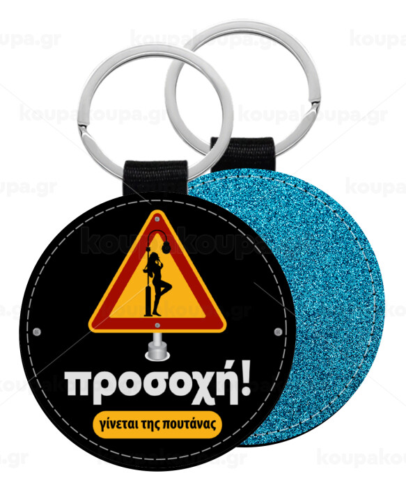 Προσοχή Γίνεται της πουτ.νας, Μπρελόκ Δερματίνη, στρογγυλό ΜΠΛΕ (5cm)