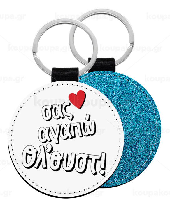 Σας αγαπώ όλ'ουστ!, Μπρελόκ Δερματίνη, στρογγυλό ΜΠΛΕ (5cm)