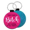 I'm not always a bitch, just kidding go f..k yourself , Μπρελόκ Δερματίνη, στρογγυλό ΜΠΛΕ (5cm)