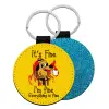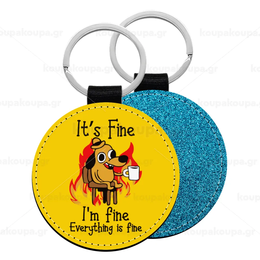 It's Fine I'm Fine Everything Is Fine, Μπρελόκ Δερματίνη, στρογγυλό ΜΠΛΕ (5cm)