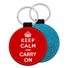 KEEP CALM  and carry on, Μπρελόκ Δερματίνη, στρογγυλό ΜΠΛΕ (5cm)