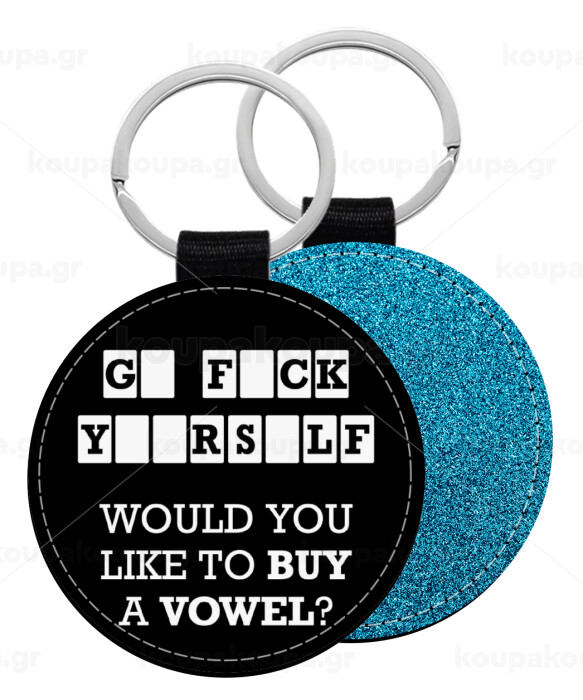 Wheel of fortune, go f..k yourself, Μπρελόκ Δερματίνη, στρογγυλό ΜΠΛΕ (5cm)