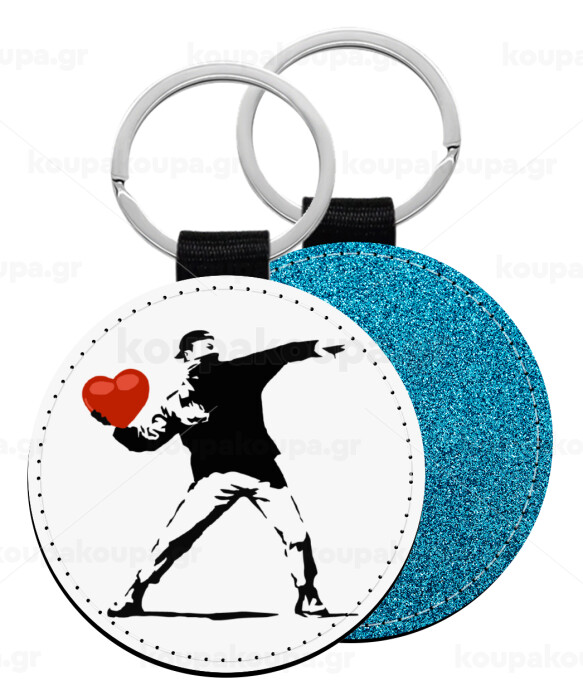 Banksy (The heart thrower), Μπρελόκ Δερματίνη, στρογγυλό ΜΠΛΕ (5cm)