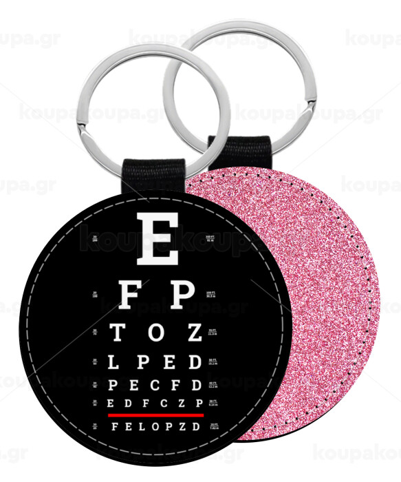 EYE test chart, Μπρελόκ Δερματίνη, στρογγυλό ΡΟΖ (5cm)
