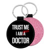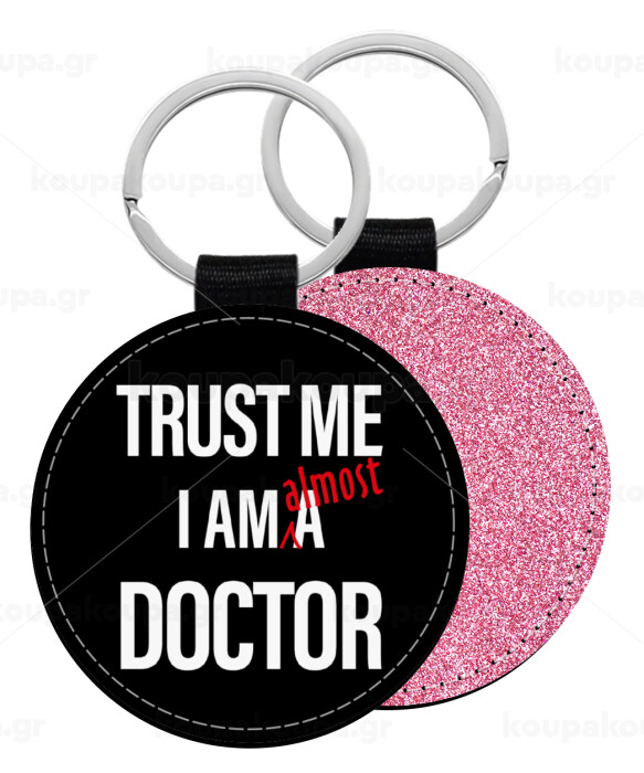 Trust me, i am (almost) Doctor, Μπρελόκ Δερματίνη, στρογγυλό ΡΟΖ (5cm)