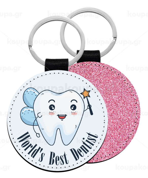 World's Best Dentist, Μπρελόκ Δερματίνη, στρογγυλό ΡΟΖ (5cm)